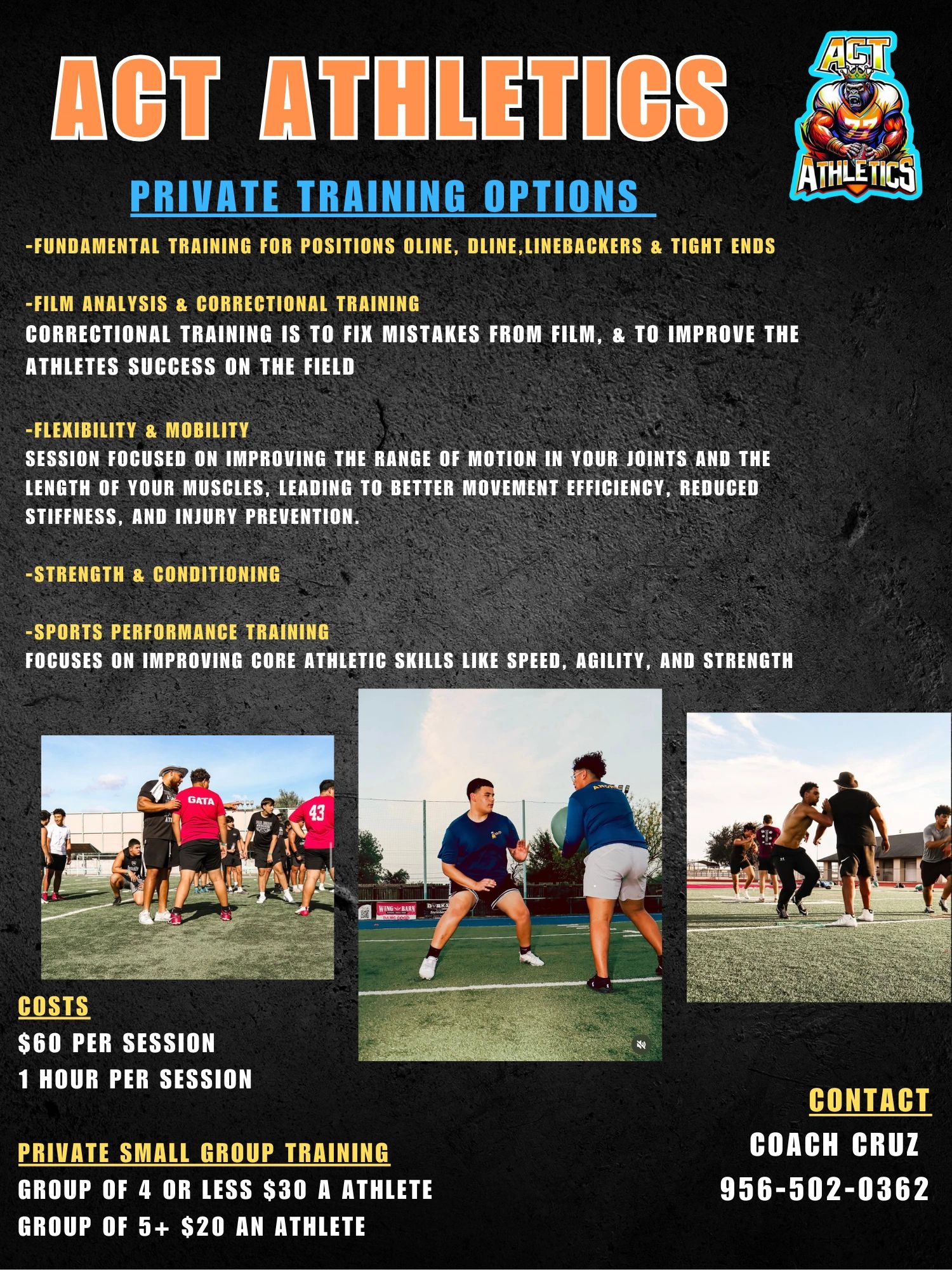 ACT is a training service focusing on developing athletes on mental sharpness, work ethic, & improving athletic ability.